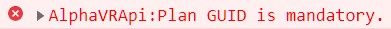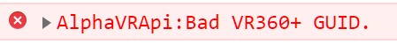 ALPHA_VR_MESSAGE.BAD_PARAMETER : VR360+ parameters are invalid. Could be the Plan GUID or the container is undefined.