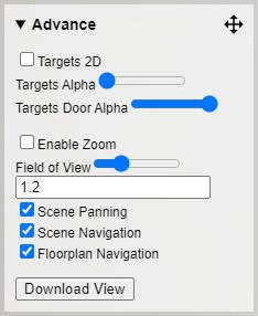 showPanel(ALPHA_VR_PANEL.ADVANCE_SETTINGS,containerHtml): Display the panel with advance VR settings on containerHtml. It will display on Scene container if containerHtml is passed empty.