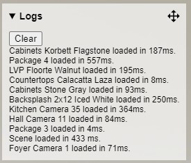 showPanel(ALPHA_VR_PANEL.LOGS,containerHtml): Display the panel with logs on containerHtml. It will display on Scene container if containerHtml is passed empty.